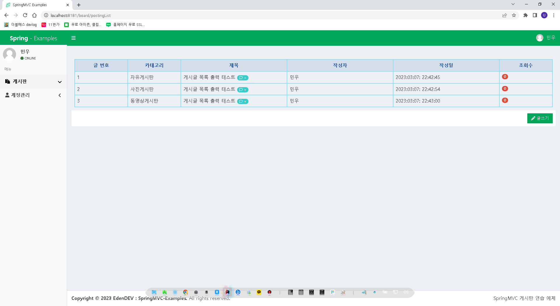 2.7 게시판 카테고리 화면 확인