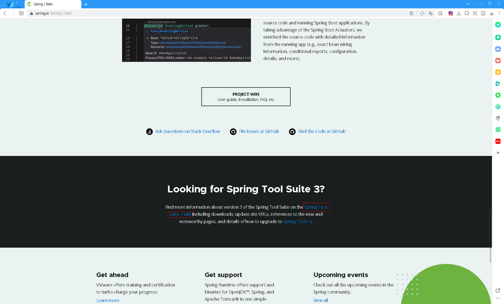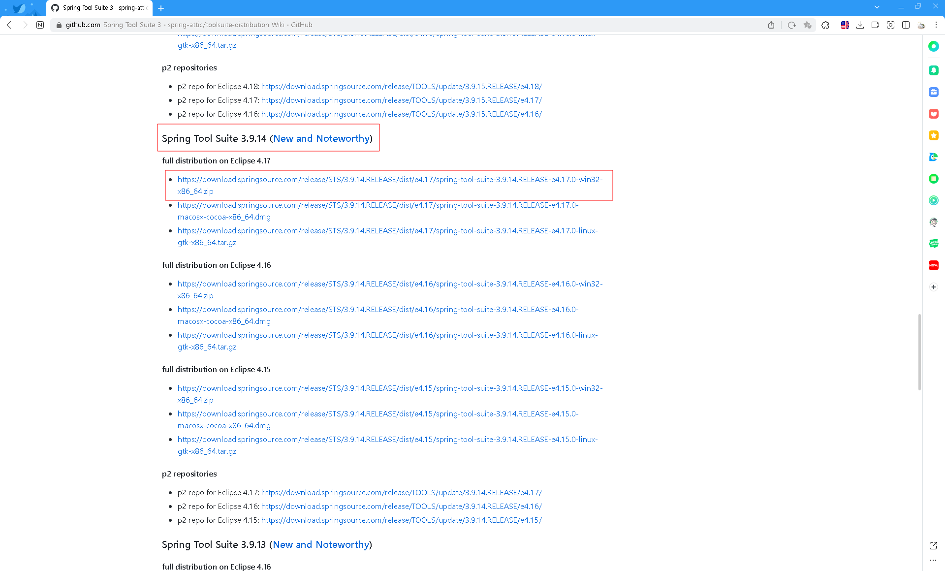 그림 002.. 페이지 가장 아래쪽으로 이동해 Spring Tool Shite 3 wiki 링크 찾기