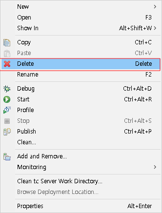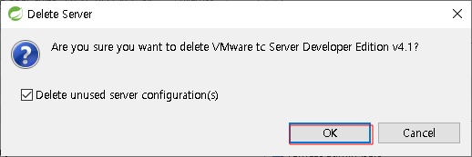 그림 003. STS 을 실행시키신후 Servers 탭에 있는 VMware tc Server Developer Edition v4.1 을 우클릭후 삭제해줍니다