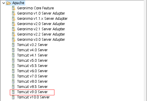 그림 004 .삭제 하신 후에 Servers 탭에서 No Servers ... 을 클릭하시고 창이 뜨시면 Apache 클릭후 Apache Tomcat 9 클릭후 Next 누르시면 됩니다.